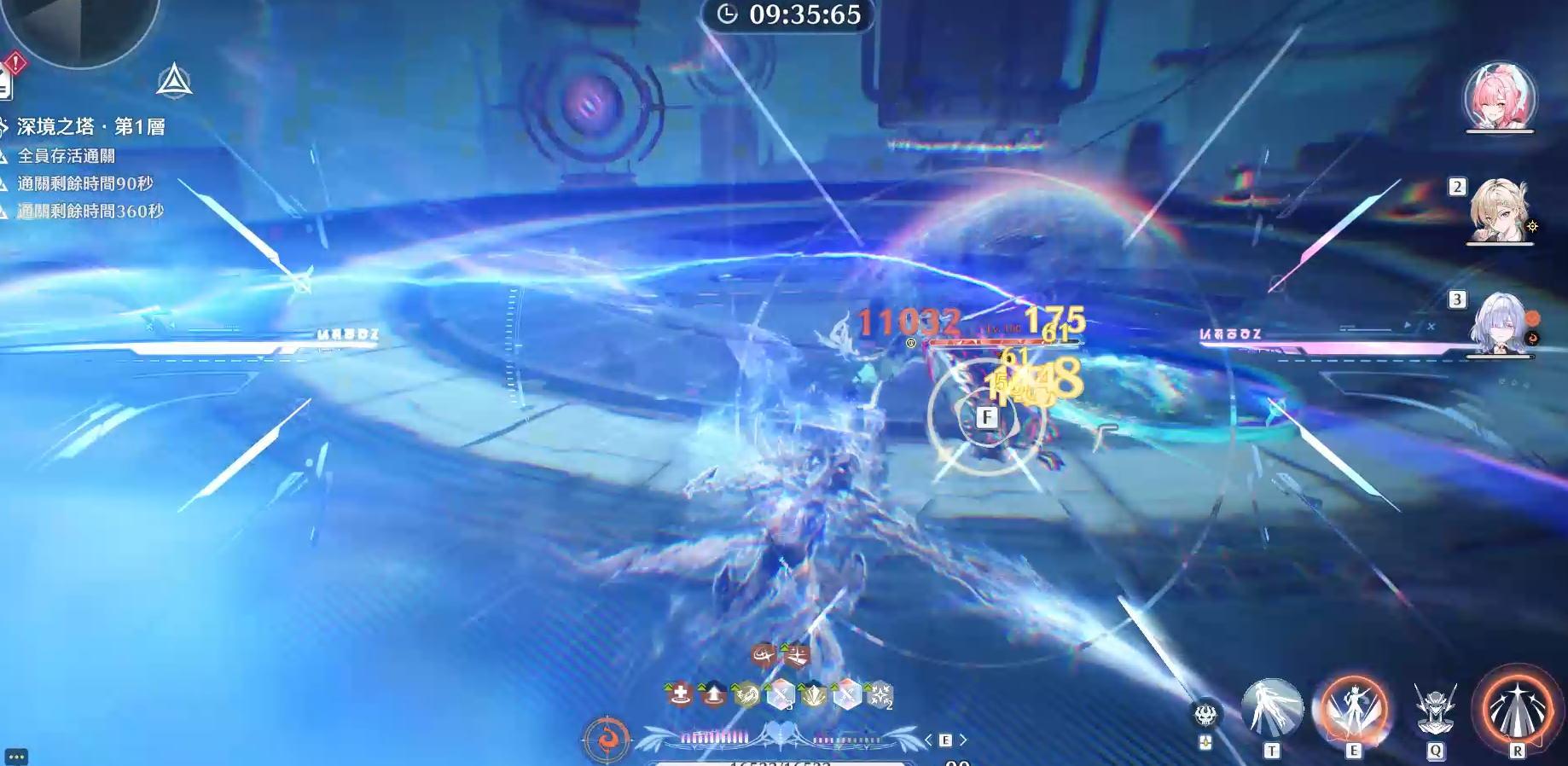 變奏入場後是機甲型態 2A到機甲有個往下劈的動作 劈完(按F)開R後E